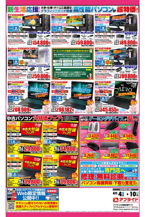 アプライド全店 売り出し期間 4/4(土)~4/10(金)