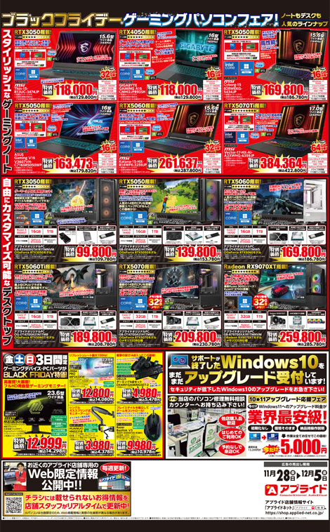 アプライド全店 売り出し期間 11/28(金)~12/5(金)
